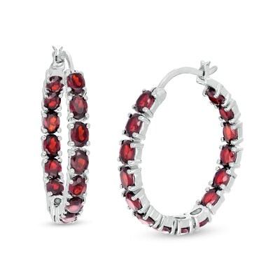 Oval Garnet Inside Out Hoop Earrings In Sterling Silver Zales