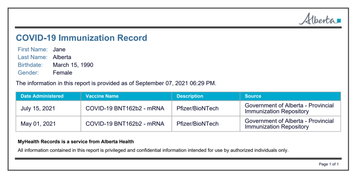 Wait times for Albertas COVID-19 vaccine record are long and people are losing it. My Service Canada. MyHealth Records is a Personal Health Record for Albertans to access some of their health information such as lab results medications and immunizations drawn from Alberta Netcare.