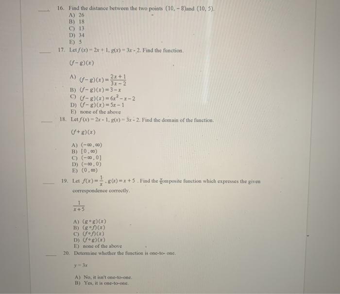 Solved 16 Find The Distance Between The Two Points 10 Chegg Com